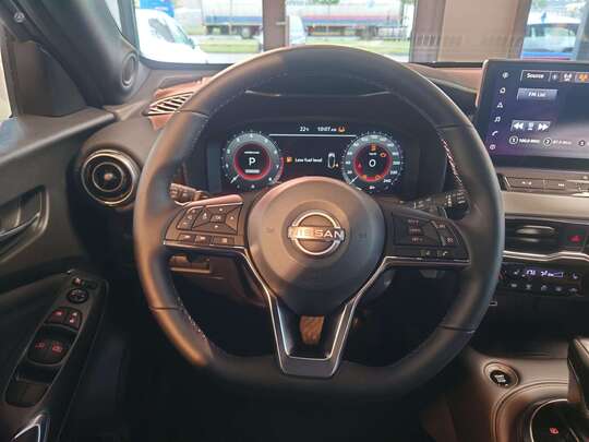 NISSAN komplektacijoje: LED žibintai, kritulių jutiklis, šildomos priekinės sėdynės, šildomas vairas, beraktė sistema, galinė vaizdo kamera, priekiniai ir galiniai statymo jutikliai, automatinio avarinio stabdymo, juostos palaikymo, kelio ženklų atpažinimo sistema, tolimųjų šviesų asistentas, navigacija, belaidis telefono kroviklis,17 colių ratlankiai, belaidis Apple CarPlay/Android Auto ir daug kitos įrangos.