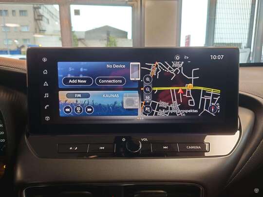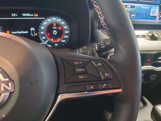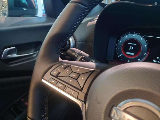 NISSAN komplektacijoje: LED žibintai, kritulių jutiklis, šildomos priekinės sėdynės, šildomas vairas, beraktė sistema, galinė vaizdo kamera, priekiniai ir galiniai statymo jutikliai, automatinio avarinio stabdymo, juostos palaikymo, kelio ženklų atpažinimo sistema, navigacija, belaidis telefono kroviklis,17 colių ratlankiai, belaidis Apple CarPlay/Android Auto ir daug kitos įrangos.