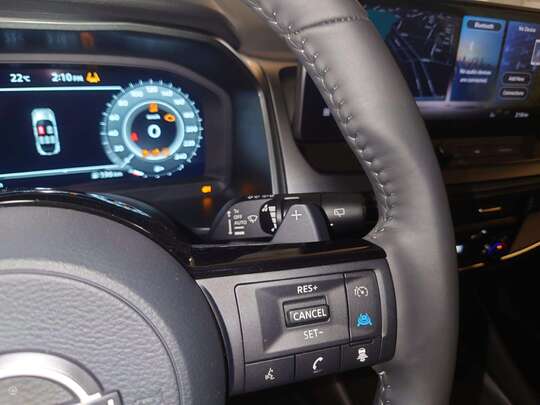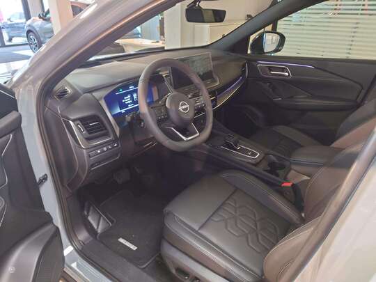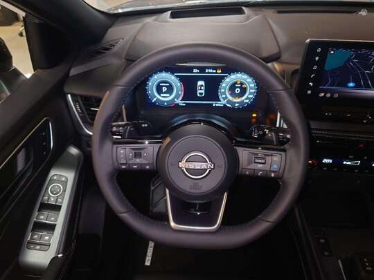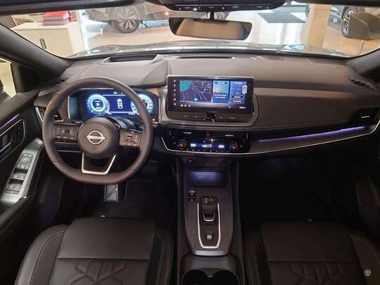 NISSAN MHEV 158 Xtronic 2WD Tekna MY24.1 komplektacijoje: Head-up display projekcija ant stiklo, vairuotojo sėdynė su atmintimi,elektra valdomas bažinės dangtis, Google navigacija Adaptyviniai priekiniai LED žibintai, nukrypimo nuo juostos, ProPILOT - atstumo palaikymo , išmani juostos palaikymo, judėjimui spustyse sistemos, kelių ženklų atpažinimo, automatinio avarinio stabdymo, automatinės ilgosios-trumposios šviesos, Monoform sėdynės dirbtinės odos sėdynės, priekiniai ir galiniai statymo jutikliai, 360 laipsnių vaizdo kamera, 19 colių lengvojo lydinio ratlankiai, beraktė sistema, Apple CarPlay/AndroidAuto ir daug kitos įrangos.