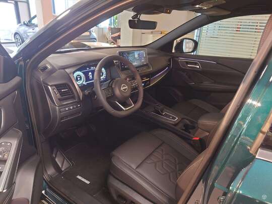 NISSAN MHEV 158 Xtronic 2WD Tekna MY24.1 komplektacijoje: Head-up display projekcija ant stiklo, vairuotojo sėdynė su atmintimi,elektra valdomas bažinės dangtis, Google navigacija Adaptyviniai priekiniai LED žibintai, nukrypimo nuo juostos, ProPILOT - atstumo palaikymo , išmani juostos palaikymo, judėjimui spustyse sistemos, kelių ženklų atpažinimo, automatinio avarinio stabdymo, automatinės ilgosios-trumposios šviesos, Monoform sėdynės dirbtinės odos sėdynės, priekiniai ir galiniai statymo jutikliai, 360 laipsnių vaizdo kamera, 19 colių lengvojo lydinio ratlankiai, beraktė sistema, Apple CarPlay/AndroidAuto ir daug kitos įrangos.