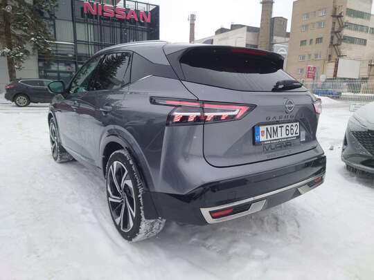 NISSAN Qashqai MHEV 2WD Tekna+ MY24 komplektacijoje: Šildomas priekinis stiklas, Šildomos sėdynės, Šildomas vairas, Google navigacija, Panoraminis stogas, Bose aparatūra, Projekcija ant stklo (Head-up), Adaptyviniai priekiniai LED žibintai, nukrypimo nuo juostos, ProPILOT - atstumo palaikymo, Išmani juostos palaikymo, judėjimui spustyse sistemos, kelių ženklų atpažinimo, automatinio avarinio stabdymo, automatinės ilgosios-trumposios šviesos, Sėdynės natūralios odos, elektrinės, su masažo funkcija, priekiniai ir galiniai statymo jutikliai, 360 laipsnių vaizdo kamera, 20 colių lengvojo lydinio ratlankiai, beraktė sistema, Apple CarPlay/AndroidAuto ir daug kitos įrangos.