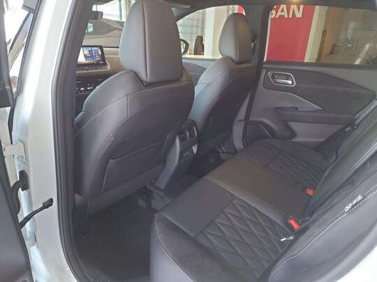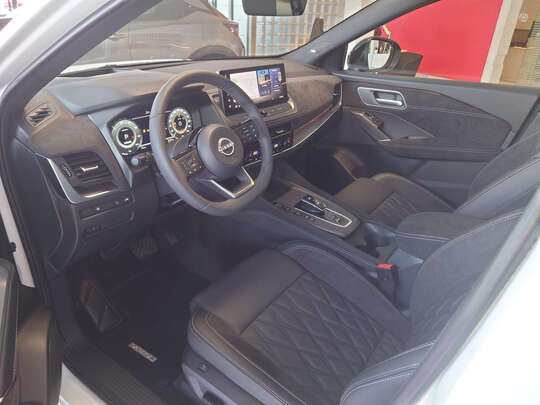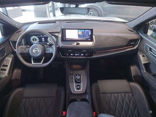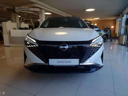 Nissan Qashqai E-Power 2WD Tekna+ MY25 komplektacijoje: Šildomas priekinis stiklas, Šildomos sėdynės, Šildomas vairas, Google navigacija, Panoraminis stogas, Bose aparatūra, Projekcija ant stklo (Head-up), Adaptyviniai priekiniai LED žibintai, nukrypimo nuo juostos, ProPILOT - atstumo palaikymo, Išmani juostos palaikymo, judėjimui spustyse sistemos, kelių ženklų atpažinimo, automatinio avarinio stabdymo, automatinės ilgosios-trumposios šviesos, Sėdynės natūralios odos, elektrinės, su masažo funkcija, priekiniai ir galiniai statymo jutikliai, 360 laipsnių vaizdo kamera, 20 colių lengvojo lydinio ratlankiai, beraktė sistema, Apple CarPlay/AndroidAuto ir daug kitos įrangos.